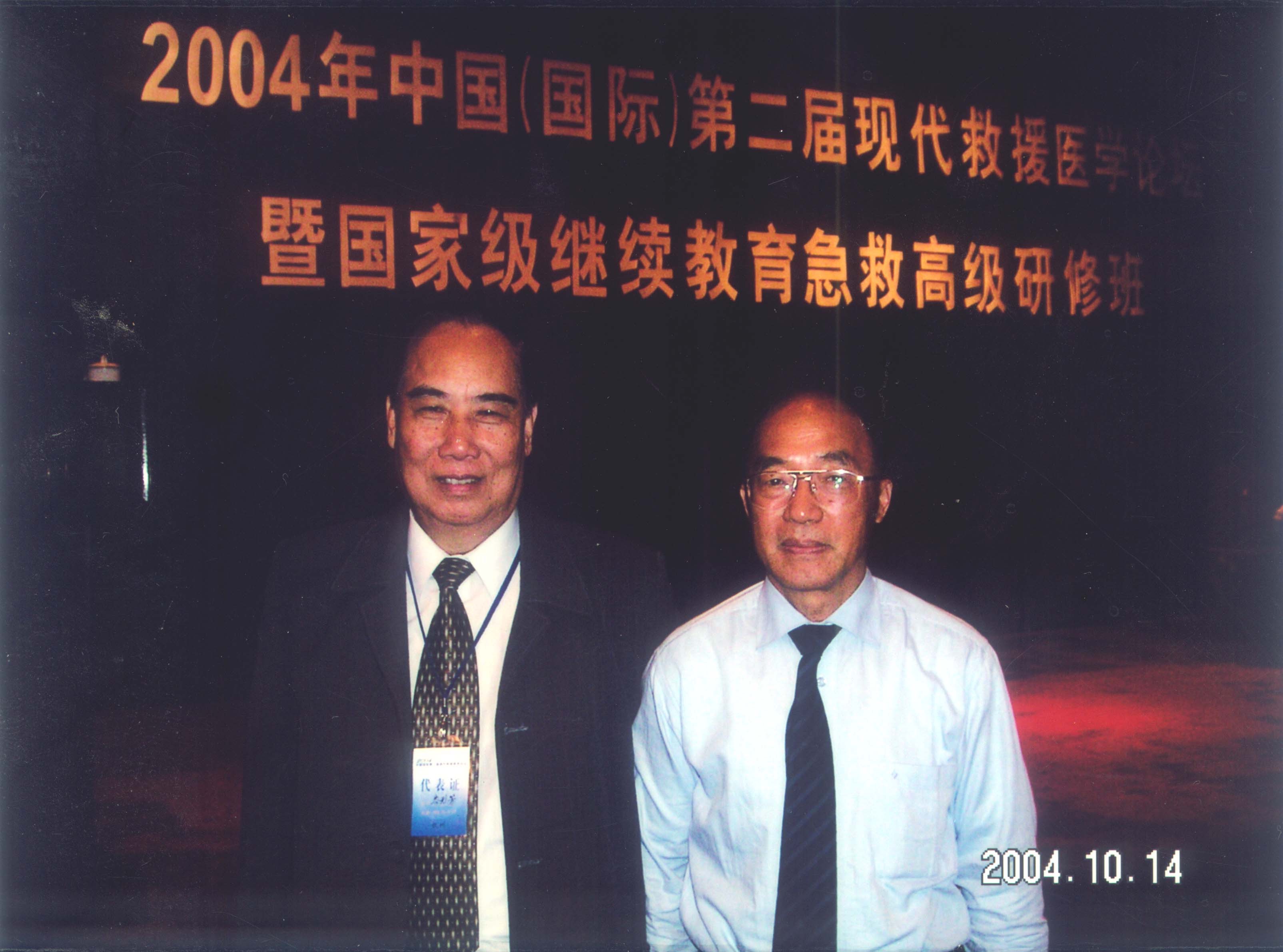 中國醫(yī)師急救復(fù)蘇協(xié)會專業(yè)委員會主委、中國災(zāi)害防御協(xié)會救援醫(yī)學(xué)會會長李宗浩教授(右)和岑烈芳教授合影